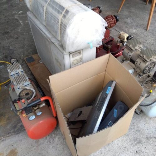 回収した主な品目は、取り外し済みの壁掛けエアコン2台、コンプレッサー、電動ドリルやスパナなどの工具一式、脚立などです❗️